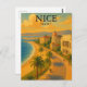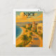 Echa un vistazo a esta hermosa y colorida tarjeta postal retro de viaje de Niza Francia que muestra la icónica costa y el paseo de los ingleses. Es un recuerdo de viaje increíble y una idea de regalo para todos los turistas y visitantes de la zona de la Riviera Francesa.