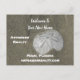 Esta tarjeta de bienvenida para compradores de viviendas presenta una foto de la naturaleza que captura un dólar de arena sentado en arena húmeda. El dólar de arena blanco está rodeado de arena marrón y gris. "Bienvenido a su Nuevo Hogar" y el nombre de su negocio aparecen junto al dólar de arena y se pueden personalizar fácilmente si lo desea.