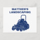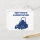 Ayuda a difundir tu negocio paisajístico y a conseguir nuevos clientes con estas postales promocionales. En la parte delantera de las tarjetas encontrará su negocio y el ilustracion de una cortadora de césped comercial en azul marino. El lado inverso está listo para ser personalizado con su propia información. Utilice los campos de plantilla para introducir todos los detalles de su negocio. ¡Ideal para distribuirse a otras casas en los barrios donde ya tienes clientes!