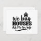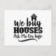Este elegante y Minimalista Postal empresa inmobiliario presenta letras en negrita en blanco y negro que llaman la atención al instante. En el centro, la frase "We Buy Houses" (Compramos casas) se muestra de manera prominente en un texto grande y fácil de leer, que transmite un mensaje claro. Debajo, en un tipo de letra más pequeño pero igualmente legible, se puede leer "Pregúntame por información", invitando a los destinatarios a solicitar más detalles. El diseño sencillo asegura que el Mensaje se destaque sin distracción, lo que lo hace perfecto para profesionales inmobiliarios que buscan atraer potenciales compradores y vendedores. Ideal para el envío de correos, el diseño limpio y sencillo ofrece un atractivo profesional sin ningún sentido que facilita a los propietarios de viviendas ponerse en contacto.