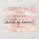 postal de la moda de una doncella de honor con un fondo de oro rosa/rosa único y una tipografía "doncella de honor" con letras modernas.