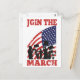 ilustracion de norteamericanos protestando con pancartas y estrellas y bandera de franjas que también dramatiza el apoyo al movimiento de protesta Occupy Wall Street y Occupy America con palabras Únete a la Marcha