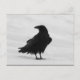 Un Raven Común se erige orgullosamente en un fondo blanco nevado. El Raven es la ave oficial del Territorio del Yukón, en el norte de Canadá.