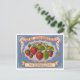 Esta postal es una reproducción de un anuncio de litografía vintage con fresas frescas.