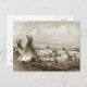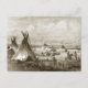 Obra de arte de tono marrón de una aldea india en el antiguo oeste estadounidense.