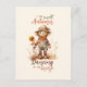 Admire la magia de la caída con esta postal de "I Can Smell Autumn Dancing in the Breeze", con un encantador espantapájaros, girasoles dorados y una rústica atmósfera otoñal. Este ilustracion acogedor y reconfortante capta la esencia del aire fresco del otoño, las hojas en caída y los colores cálidos de la temporada. Perfecto para los amantes del otoño, de las vibraciones de una casa de campo, de los entusiastas del otoño y de los regalos de temporada, este diseño le da vida al encanto nostálgico del tiempo de cosecha.