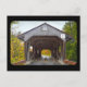 Puente cubierto Power House, Postal Vermont "Puente cubierto Power House" de Catherine Sherman. El puente cubierto Power House se muestra aquí entre los vivos follajes del otoño. El puente, construido en 1872, también conocido como el puente cubierto de la calle escolar, cruza el río Gihon frente a la carretera estatal 100C en Johnson, Vermont. En 1974 se inscribió en el Registro Nacional de Lugares Históricos. El nombre del puente proviene de una estación hidroeléctrica ahora obsoleta que está río arriba, pero los cables eléctricos siguen corriendo cerca del puente. Se desconoce el constructor de este puente del diseño de la Reina post. En 1960 se realizaron pequeñas reparaciones en los matones, los acercamientos y el suelo. En 1995 se recomendó reforzar el puente debido al gran número de camiones que utilizaban la carretera como cortazo. Se instalaron vigas de acero I debajo. En 2000, el puente fue destruido por una fuerte carga de nieve. El techo se derrumbó y los muros laterales cayeron hacia el río por debajo. Debido a la instalación del acero que vigas, la cubierta era auto-sostenida y en realidad sobrevivió. Se colgaron guardas a los lados de la cubierta para mantener el puente abierto mientras se decidía su destino. En 2002, el puente fue reconstruido y reabierto el 29 de junio de 2002. Ya no se permiten camiones en este puente de un carril, uno de los muchos puentes de un carril encantadores de Nueva Inglaterra.