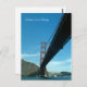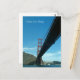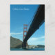 Puente Golden Gate. Mirando la torre norte del puente Golden Gate desde la base de la torre sur. San Francisco, California. Cabezales de marín y cielo azul en segundo plano. Texto escrito en blanco en la esquina superior izquierda.