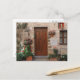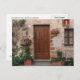 Una foto de una puerta de madera rústica hermosa en un pueblo bonito en el campo toscano rodeado por las flores y las plantas. La construcción de la piedra y de ladrillos es típica de Toscana. ¡Un gran recuerdo de un día de fiesta o de un viaje a Italia a guardar o pues un regalo usted no tiene que llevar a casa! Usted puede cambiar el texto para personalizarlo o para suprimirlo si usted prefiere.