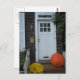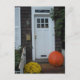 Tarjeta postal con una puerta en Nueva Inglaterra en otoño.