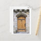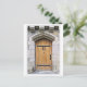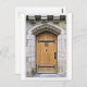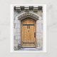 Postal turística del vintage de una puerta gótica de madera de Yale con la letra F en ella