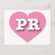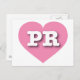 Esta postal tiene un tranquilo y fresco corazón rosado que contiene las letras negrita, blanca y alta del funda PR, la abreviatura oficial de Puerto Rico, la isla encantada. El reverso de la postal está en blanco, esperando el texto personalizado o los sentimientos manuscritos.