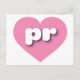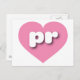 Esta postal tiene un corazón tranquilo y fresco de color rosa que contiene las letras fundas más bajas, redondeadas, blancas y negrita, una versión juguetona de la abreviatura de Puerto Rico, la isla encantada.