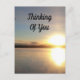 Envía un mensaje de "Pensando en ti" en una postal con la luz brillante del sol que se refleja en el agua tranquila de un lago en calma. El diseño audaz es moderno y simple con colores gris, negro y dorado que envían un sentimiento cálido y de apoyo.