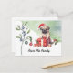 ¡Celebra la temporada de fiestas con esta adorable postal de perro de cerdo de "Feliz Navidad"! Con un lindo pug, esta alegre postal capta la alegría y la comodidad de los Navidades. Ideal para los amantes del pug y para aquellos que disfrutan de unas vacaciones tranquilas.