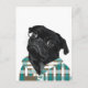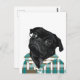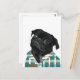 Postal Pug Negra Adorable Con Gafas Y Camisa
