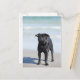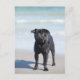 Postal Pug Negro Sobre La Playa