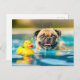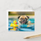 Postal Pug Swimming with Rubber Duck in Pool