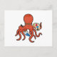 Postal Pulpo como pintor con pintura y pincel