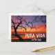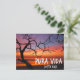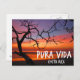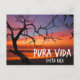 Fotografía de la postal de Costa Rica con una vibrante puesta de sol sobre la playa en Playa Avellanas, Costa Rica impresa con Pura Vida y Costa Rica en blanco.