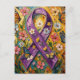 A pretty postcard for a Fibro warrior. The front has a pretty impasto style purple awareness ribbon, butterflies and flowers. A purple awareness ribbon can represent Common meanings of the purple ribbon: