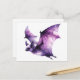 This postcard features watercolor artwork of a bat flying. The nocturnal wild animal is in shades of purple, from dark to light.