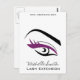 Dibujo simple de un ojo hembra con pestañas largas y delineador de ojos en negro y púrpura. Perfecto para la promoción de su empresa. Adecuado para maquilladores, extensión de abadejo, esteticistas, estilistas, salón de spa, peluquería y belleza o agencia de modelos. Personalizable.