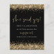 Purpurina De Oro Negra Dijo Sí Invitación De Compromiso. Un poco brillante para que todos sepan sus emocionantes noticias en una conveniente postal en negro y oro clásico. Los elegantes bordes de confeti de purpurina dorado están en la parte superior e inferior y también en la parte trasera. Dijo que Sí y Compromiso están establecidos en un estilo moderno de escritura a mano. Personaliza fácilmente el resto del texto a tu propia persona.