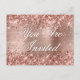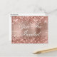 Una glamorosa invitación de 16 años para el día especial de su hija. Puedes adaptar la información de la parte trasera para una casa en lugar de tu restaurante de pizza favorito u otro lugar. Faux brillantemente rosa purpurina de oro contra una falsa y brillante imagen gráfica de Relieve metalizado metalizado cepillado. Se puede personalizar el color, el tamaño o el estilo de la caligrafía y el texto moderno. Todo el brillo y el color rosa de este moderno diseño giratorio son gráficos digitales. En la creación no se utilizará ningún purpurina ni Relieve metalizado real. Las imágenes de alta calidad se imprimen como una foto.