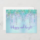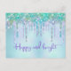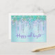 moda de bonito y elegante carta de Navidades de goteo de color azul azul turquesa de agua azul turquesa de unicornio iridiscente. Hermoso, moderno y fresco diseño mágico brillante y moderno. Personalízalo con tu propio mensaje o nombres, perfecto para las vacaciones y la temporada de Navidades. NOTA: Se trata de gráficos impresos planos, sin purpurinas, joyas ni piezas elevadas.