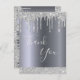 Un falso color de fondo metálico de Relieve metalizado plateado. Con goteos falsos purpurinas de plata. En el frente del guión con letras de gran mano y el texto: Gracias. Parte posterior: plantilla para su nota de agradecimiento y nombre/nombres. Sugerencia: Si no desea que se vea como una postal, haga clic en personalizar, vaya a la parte posterior y quite el separador y el sello postal.
