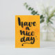 Que tengas un buen día. Caligrafía de tinta negra vectorial para tarjetas, impresiones y contenido de medios sociales, diseño de moda. Cita positiva, con letras en fondo amarillo. | Bigstock® - Todos los derechos reservados.