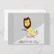 Una postal con un león esquiador.