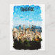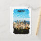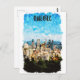 Hermosas acuarelas de arte en una postal que exhibe la silueta icónica y el paisaje de la ciudad canadiense de Quebec con sus rascacielos y monumentos. Excelente recuerdo de viaje y idea de regalo para todos los turistas.