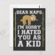 Queridas Napas Lo siento, te odié como gráfico infantil. El regalo de los amantes de los animales de la lisonja de dormir.