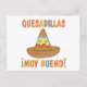 ¡La comida mexicana es realmente la mejor! Comparte tu amor por las deliciosas Quesadillas con este colorido diseño con un Sombrero y las palabras Quesadillas Muy Bueno!