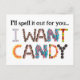 Divertido y por encima del top mensaje de los dulces de Halloween - "Quiero a Candy" escrito con mi fonético alfabeto de caramelo.