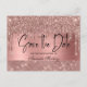 Tarjeta postal moderna, elegante y chic de save the date de Quinceañera. El diseño cuenta con brillo/hojalata dorada rosa falsa y fondo brillante, escritura en caligrafía para save the date y un nombre. Agrega más detalles en la parte trasera.
