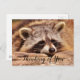 Pensando en usted Raccoon Manténgase en contacto con las postales de Zazzle personalizado! Agrega tu imagen favorita a una postal en blanco o di "hola" con un diseño preexistente. ¡Guardar papel y enviar una nota por correo sin desperdiciar sobres! 4,25" x 5,6" (retrato) o 5,6" x 4,25" (paisaje). Impreso en material de tarjeta ultrarrepesada (120 lb.) con un acabado brillante. Sin orden mínima. ¡Obtén sellos personalizados para que coincidan! La tasa de rehenes para una postal es de $0.34