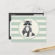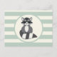 Postal Raccoon de Woodland lindo; verde sabio claro