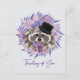 Pensando en ti. Raccoon en un gorra con una taza de café.