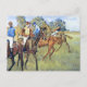 Postal de arte con los pastel, Caballos de Raza (1873), del artista impresionista francés Edgar Degas (1834-1917). Retrato de jinetes montados en un campo antes del inicio de la carrera.