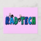 Postal Rad Tech con personas de palos y diseño de rayos X