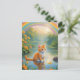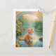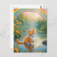 Sumergirse en un mundo de caprichos con esta imagen que muestra un gatito naranja sobre un estanque poco profundo con un mágico arco iris en el cielo.