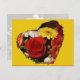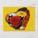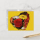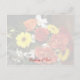 Pensando en ti con flores! Fotografía de un colorido ramo de rosas y margaritas cortada en forma de corazón de borde dentado sobre un fondo amarillo brillante rayado en la parte frontal de esta tarjeta postal de diseño. Llevando el tema del ramo a la parte trasera con texto es una fotografía de opacidad disminuida de todo el ramo. Personaliza el texto en la parte trasera, elimina el texto de los campos o haz clic en personalizar para seleccionar un estilo de letra, tamaño y color que prefieras.