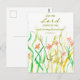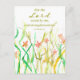 Una tarjeta postal con un versículo de la Biblia del libro de 2 Timoteo 4:17 con un ramo de flores silvestres ilustrado con acuarela. Muy bueno para grupos de estudio bíblico, colecciones de tarjetas de oración y notas para ti.