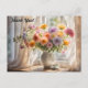 Un hermoso ramo mixto de flores en una ventana soleada, con una taza de té al lado por la mañana hace una hermosa tarjeta postal de agradecimiento.