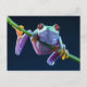 Tarjeta animal que muestra una rana climing una cuchilla de la hierba.