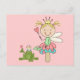 Un hada rubia de rana con un vestido verde y rosa se sienta en la polka salpicada de toadstool mirando a su futuro príncipe, la rana verde, en camisetas de Frog Fairy, bolsas de tote, tarjetas, pegatinas, gorras, imanes, cadenas de claves y más.