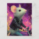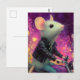 Postal Ratón blanco adorable montando una moto en la flor